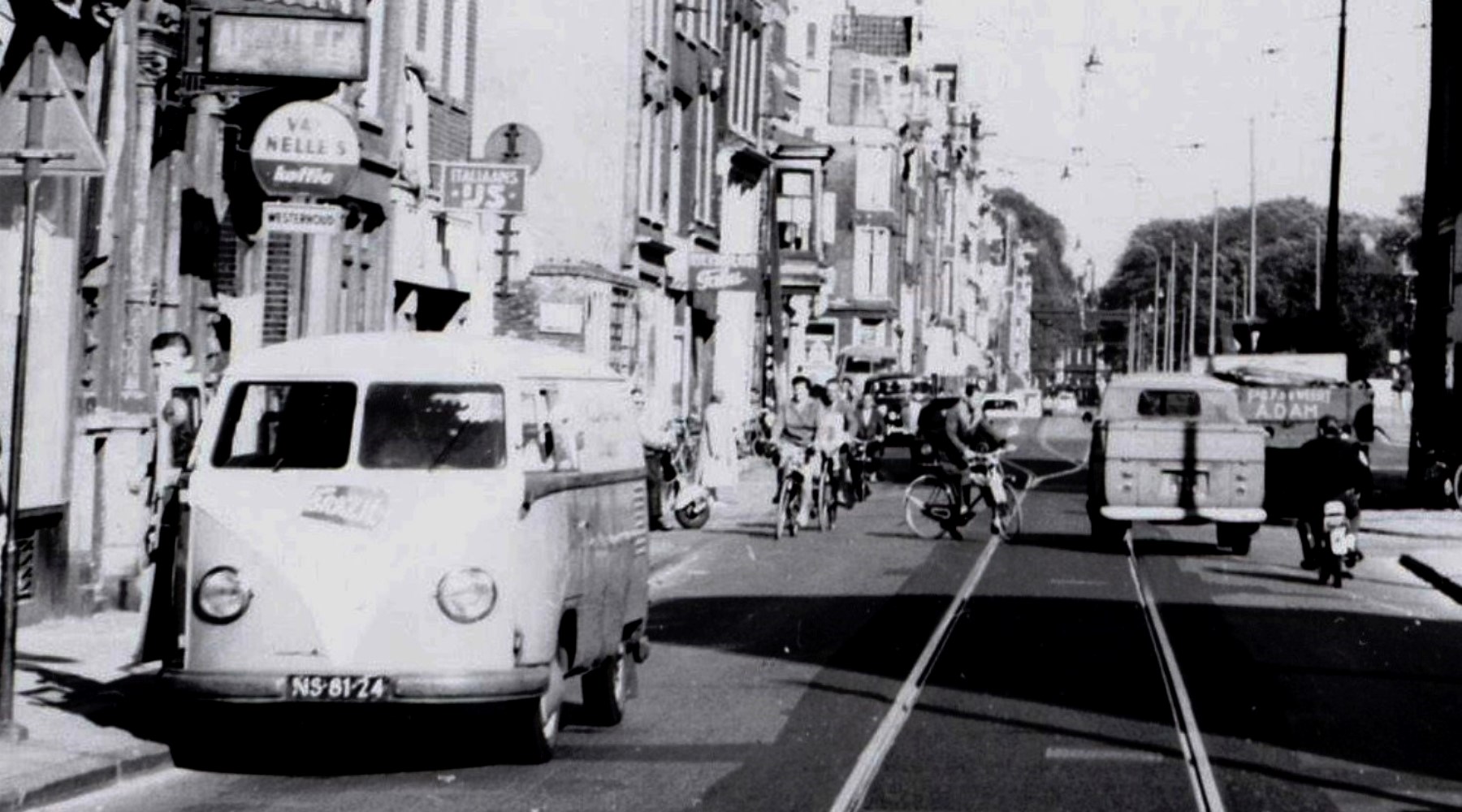 1954, Amsterdam, barndoor, bestelwagen, Frazil, neuslogo, NS, spijlbusreclame