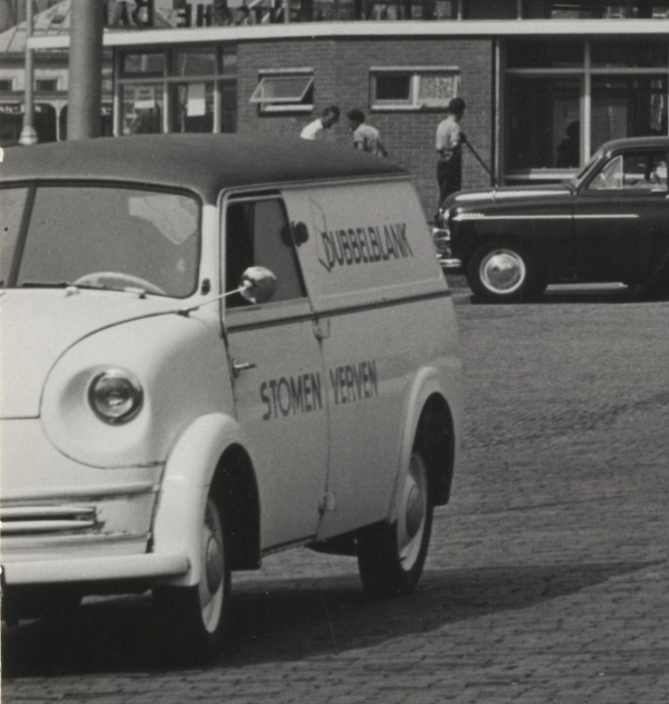 In de beeldbank van Den Haag kwam ik deze schitterende foto tegen, gemaakt voor het Kurhaus. Links in de hoek is een Lloyd LP500 te zien, met daarop reclame van de firma Dubbelblank. Dit bedrijf uit Bergen bestaat nog steeds.