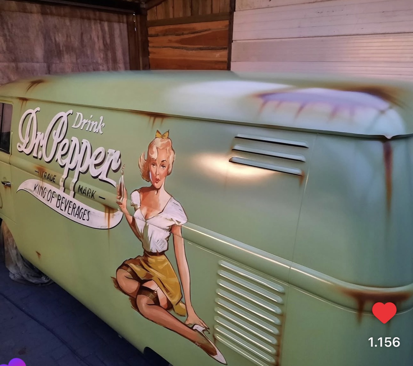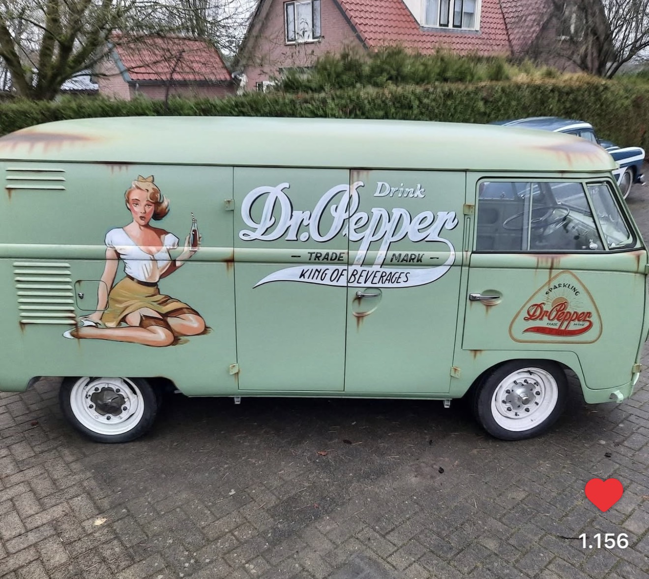 De bus is ondertussen flink beetgepakt en door Amsterdam Signpainters voorzien van prachtige Dr Pepper reclame.